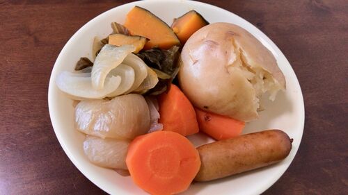 ストウブ で超簡単料理のシリーズです。 そう、何も考えず・・ ひたすら無の境地で キャベツ、にんじん、玉ねぎ、じゃがいも、にんじん、シャウエッセン 野菜を洗いカットしてから コップ一杯のお水と共にストウブへIN 中弱火で約15分、 火を止めたら、その…